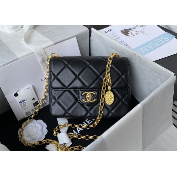 Carved Retro Square Fat Chain Bag Real Sheepskin Chain Shoulder Bag Images |